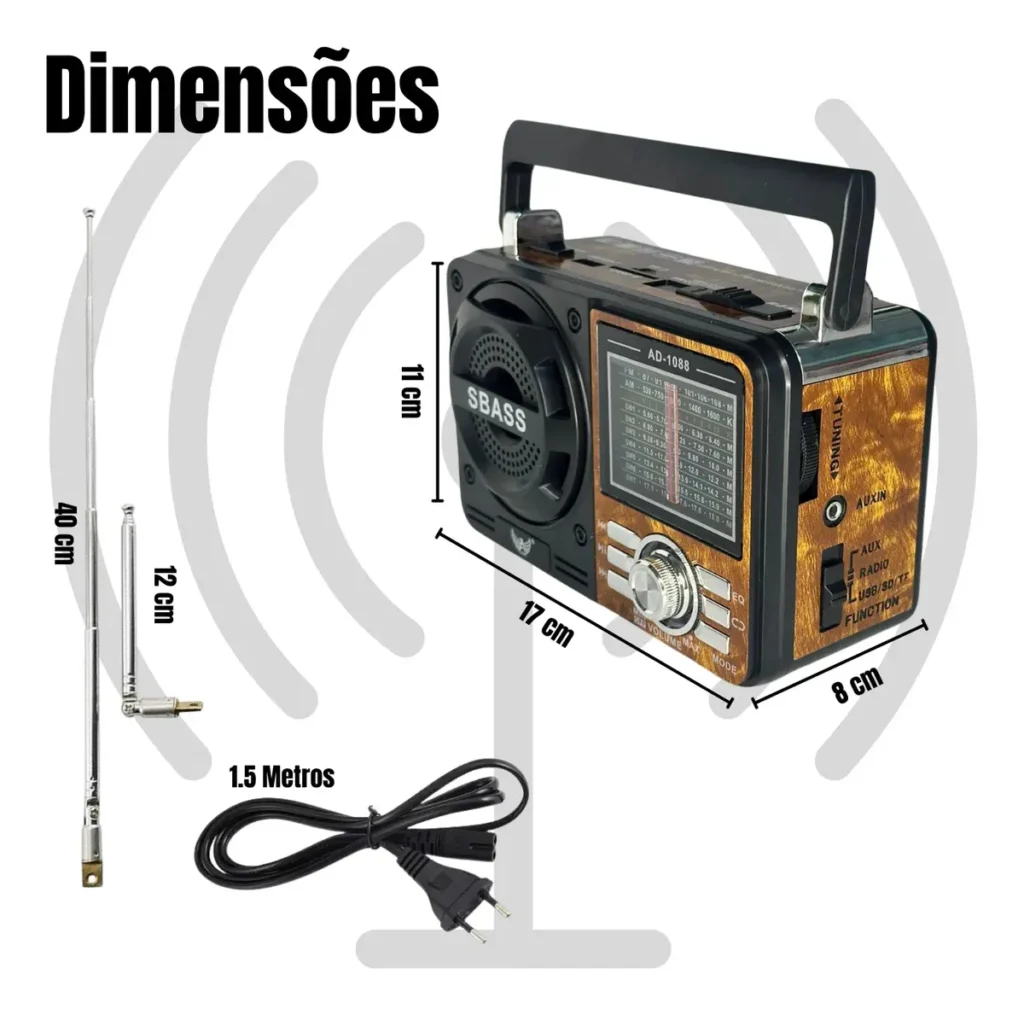 O Rádio Vintage Retro AM/FM Bluetooth USB é a escolha perfeita para quem busca um som de qualidade com um toque nostálgico. Com um design elegante e funcional, ele se destaca na decoração e na praticidade do dia a dia.
